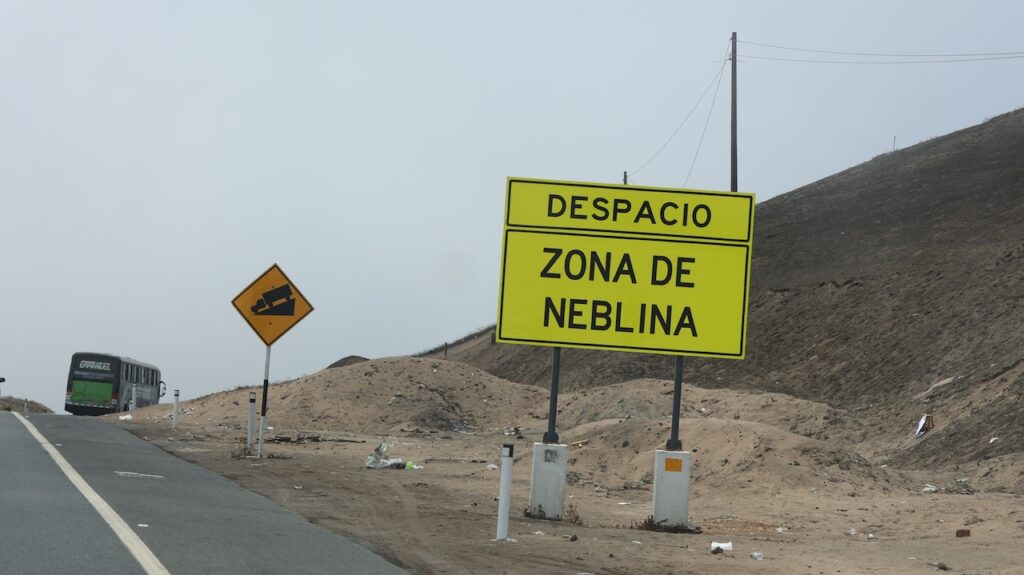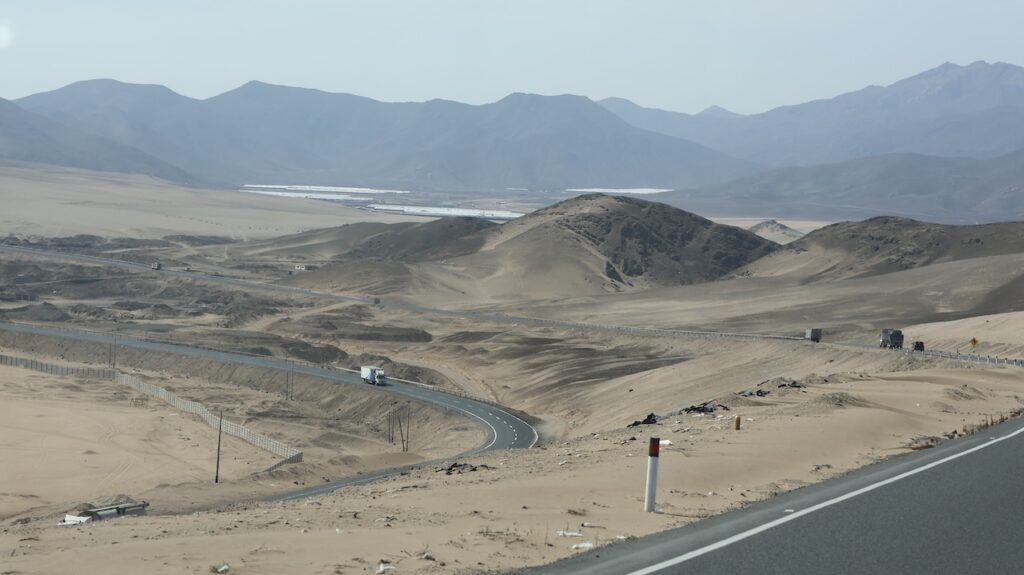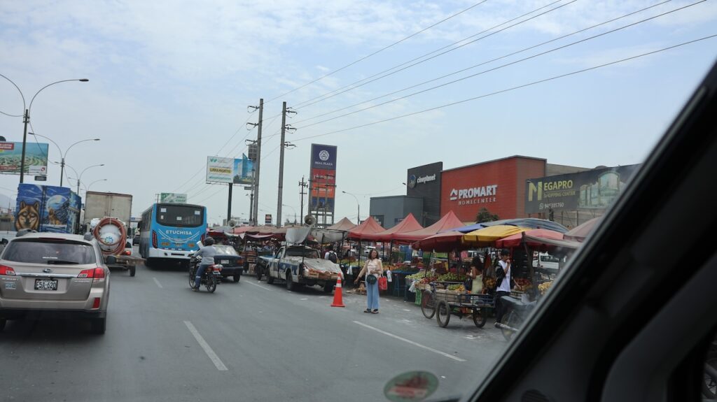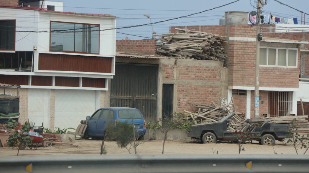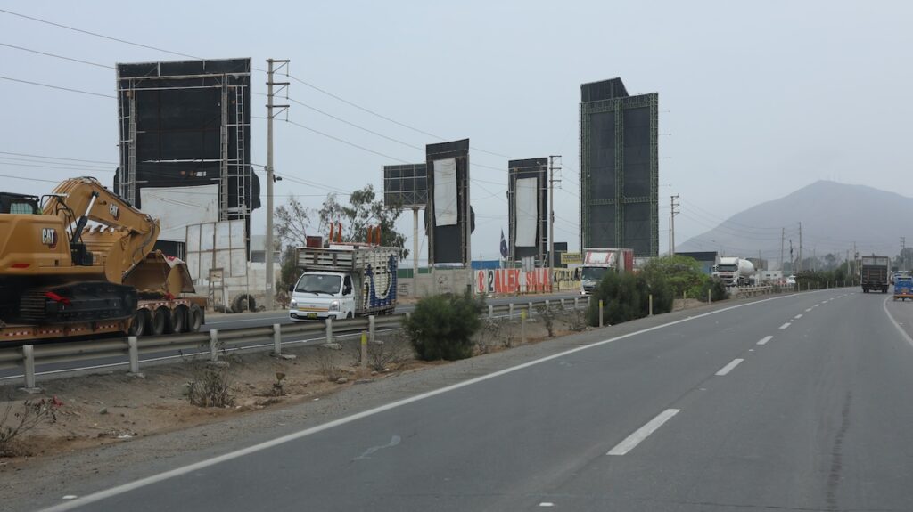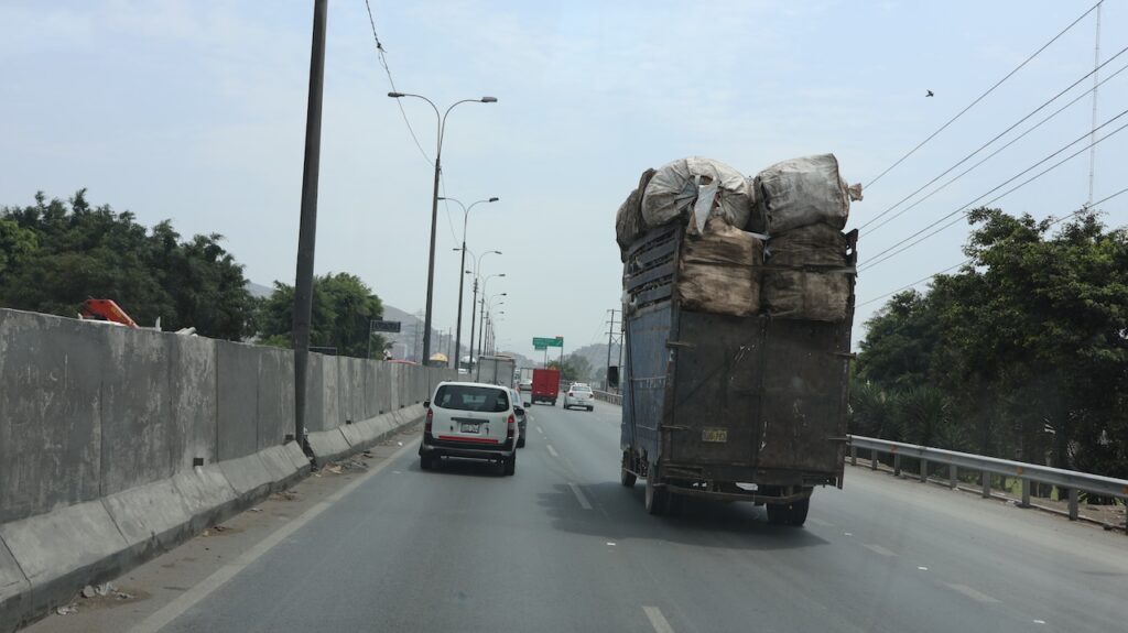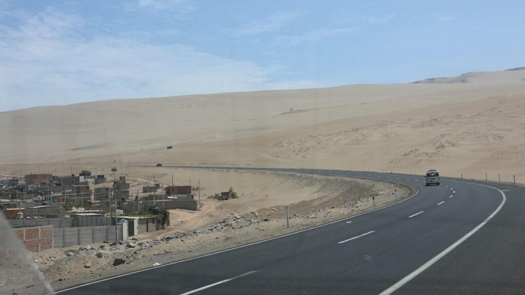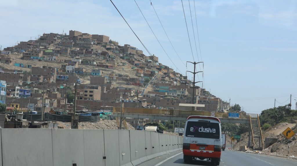 Wir sind schon früh unterwegs, denn heute müssen wir durch Lima fahren und das wird eine Geduldsprobe. Am Strassenrand stehen riesige Werbegebilde. Zum Teil viel grösser als in USA. Von San Antonio bis Ancon kommen wir nicht mehr aus den Häuserschluchten hinaus. Das sind genau 100 Kilometer und dazu brauchen wir 3 Stunden und 15 Minuten. Auf der Strasse ist ein Chaos. Menschen verkaufen Getränke, Früchte und Chips zwischen den Autos auf der dreispurigen Strasse. Motorräder überholen rechts und links. Die Taxis halten überall und stoppen den Verkehr. Wir sind froh, als der Häuserwald sich lichtet, denn dann lichtet sich auch der Verkehr.