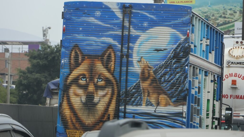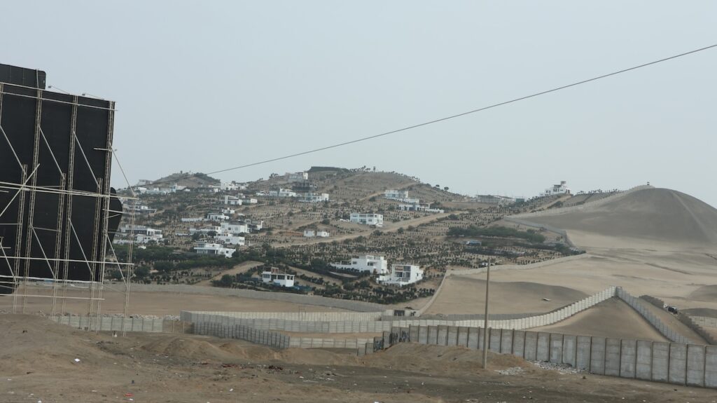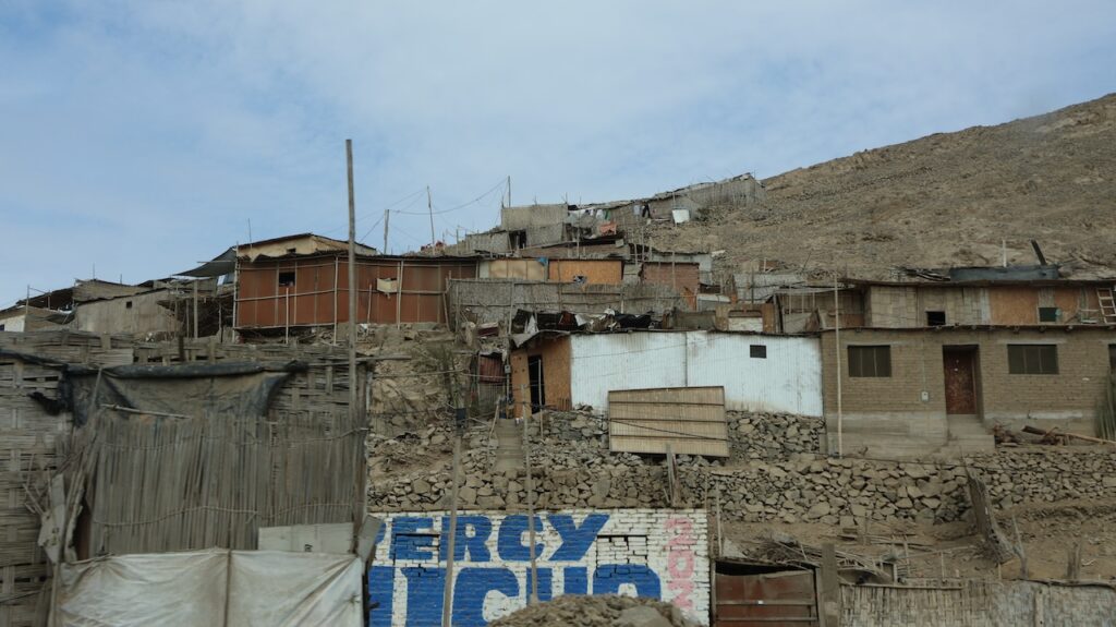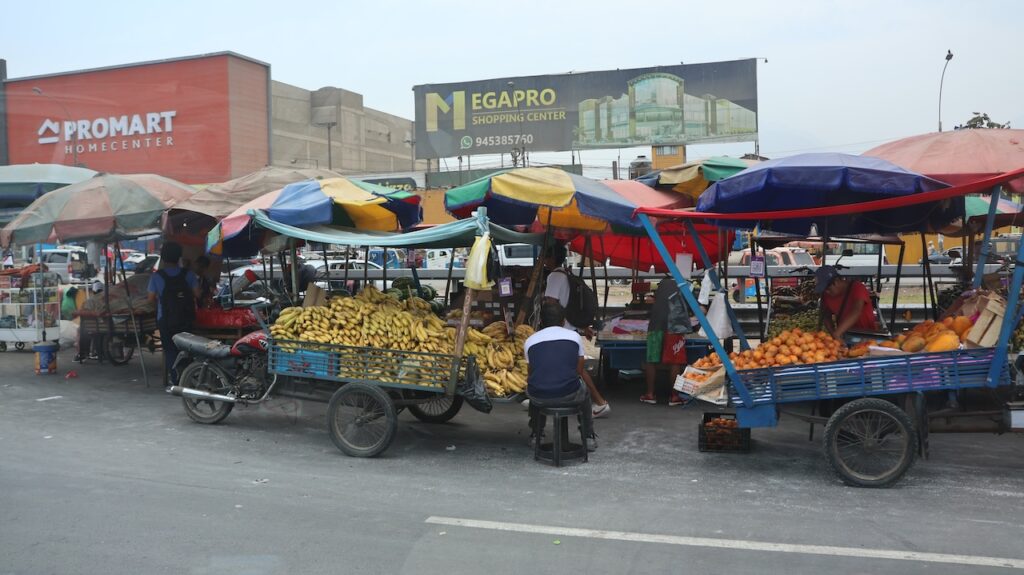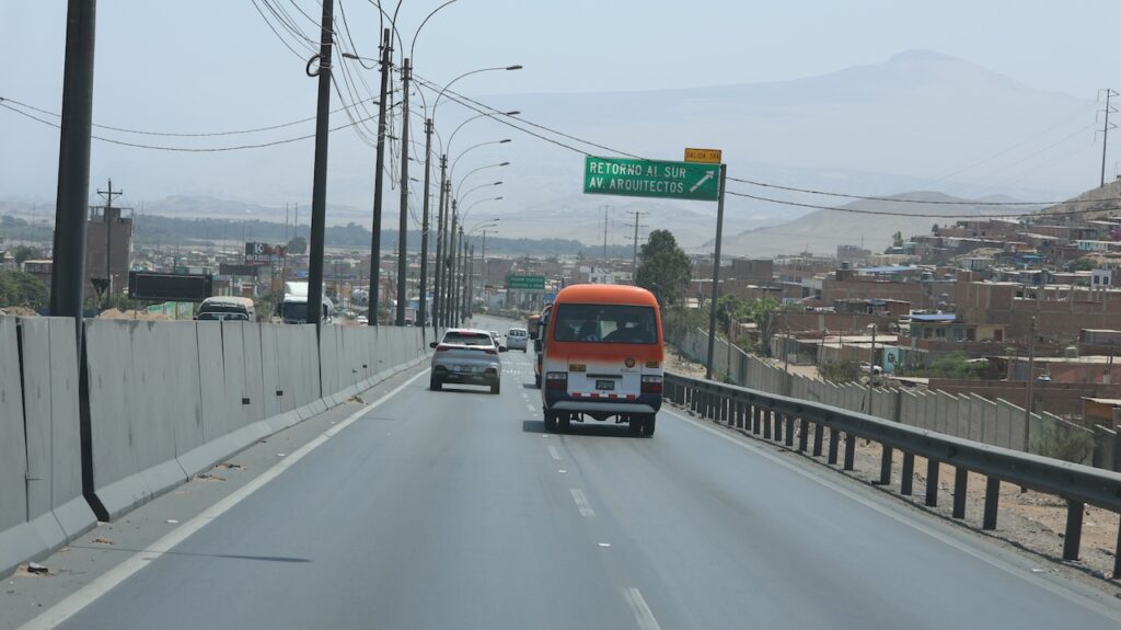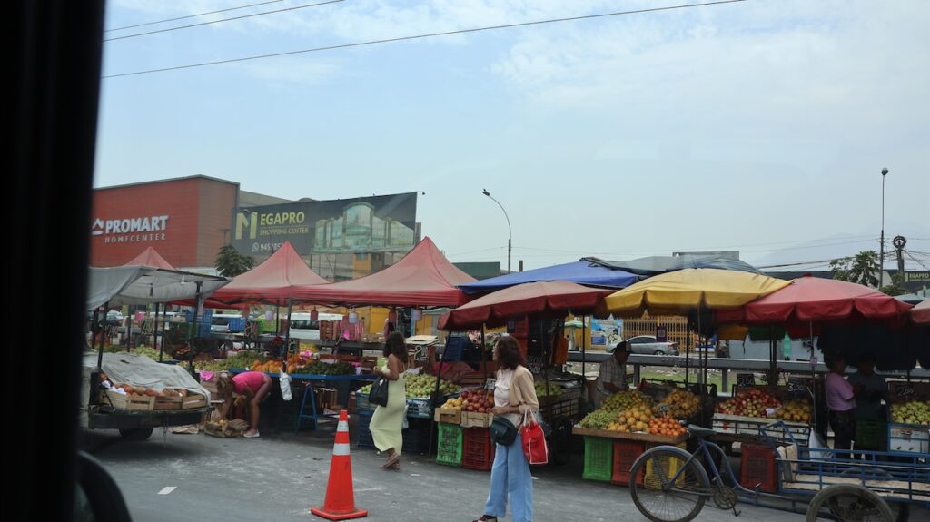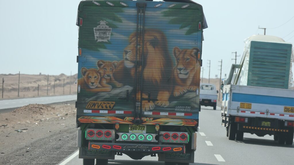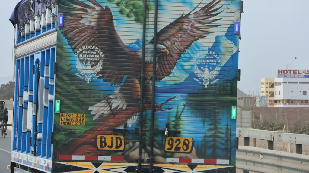 Wir sind schon früh unterwegs, denn heute müssen wir durch Lima fahren und das wird eine Geduldsprobe. Am Strassenrand stehen riesige Werbegebilde. Zum Teil viel grösser als in USA. Von San Antonio bis Ancon kommen wir nicht mehr aus den Häuserschluchten hinaus. Das sind genau 100 Kilometer und dazu brauchen wir 3 Stunden und 15 Minuten. Auf der Strasse ist ein Chaos. Menschen verkaufen Getränke, Früchte und Chips zwischen den Autos auf der dreispurigen Strasse. Motorräder überholen rechts und links. Die Taxis halten überall und stoppen den Verkehr. Wir sind froh, als der Häuserwald sich lichtet, denn dann lichtet sich auch der Verkehr.