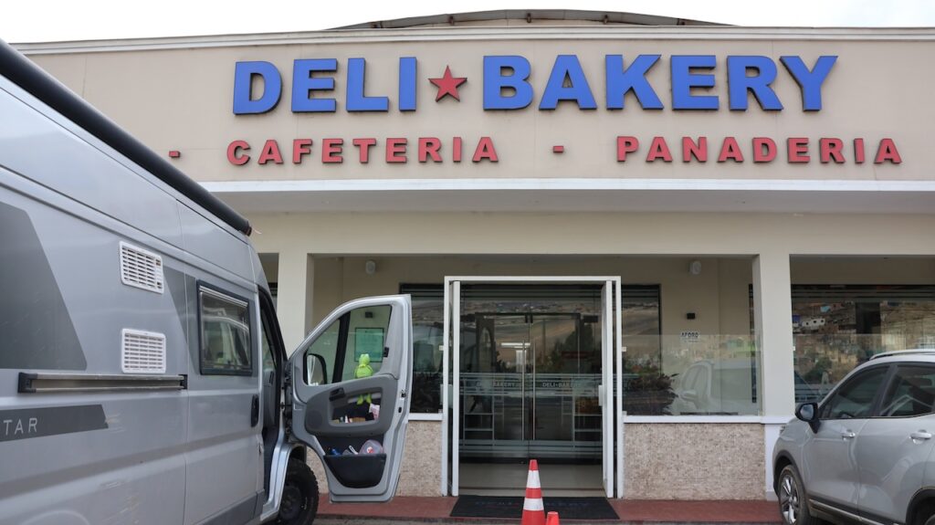 Wir machen es uns auf einem Parkplatz für die Nacht bequem.
