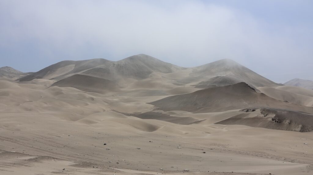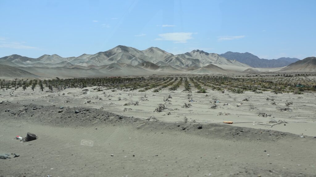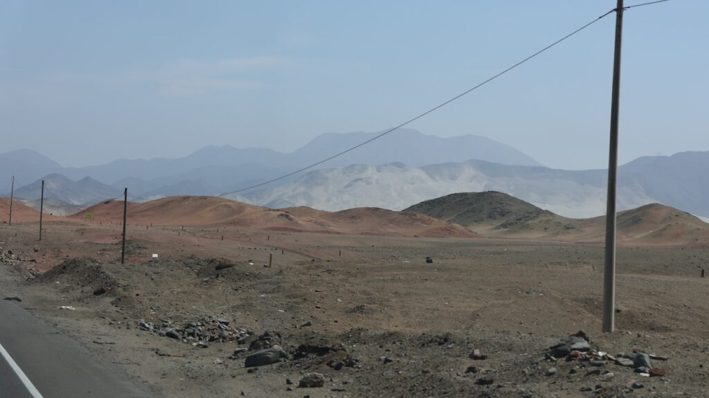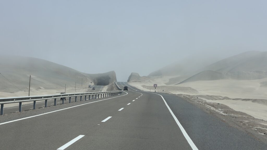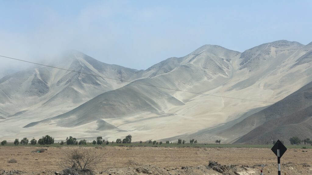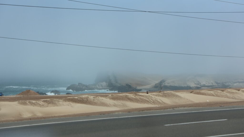 Kommen wir in die Nähe des Pazifik ist der Nebel hartnäckig. Mehr Inland scheint meist die Sonne. Ich habe nicht gewusst, dass Peru so sandig ist. Ich habe mir das Land immer grün vorgestellt. Ist es auch, aber nicht entlang des Pazifik. Also der Norden von Peru besteht zum grössten Teil aus Sand und Hühnerställen.