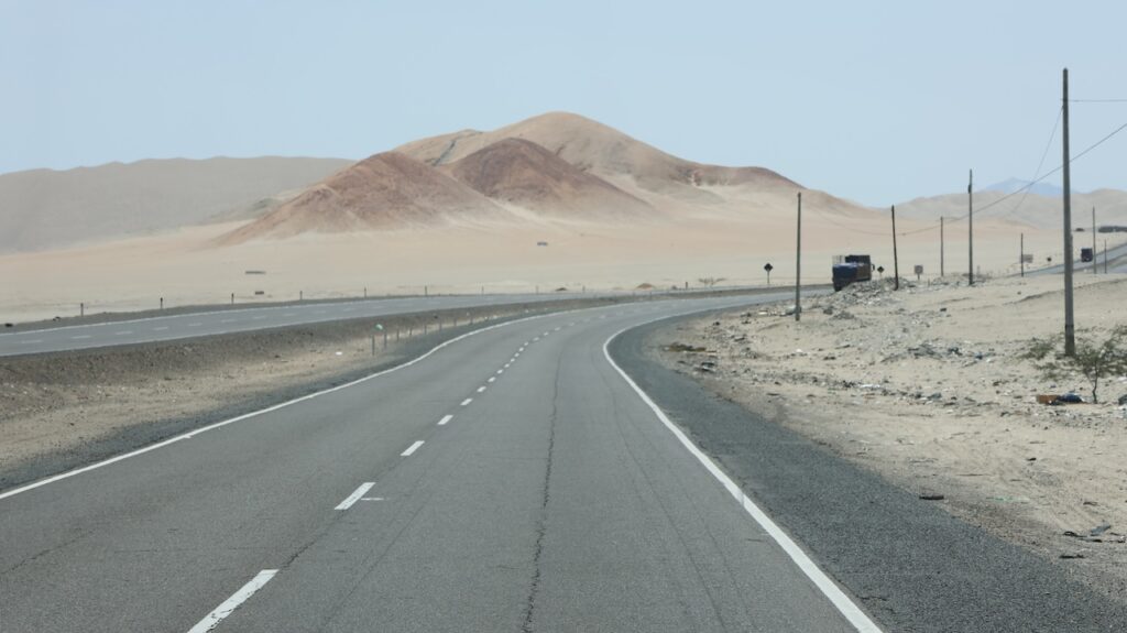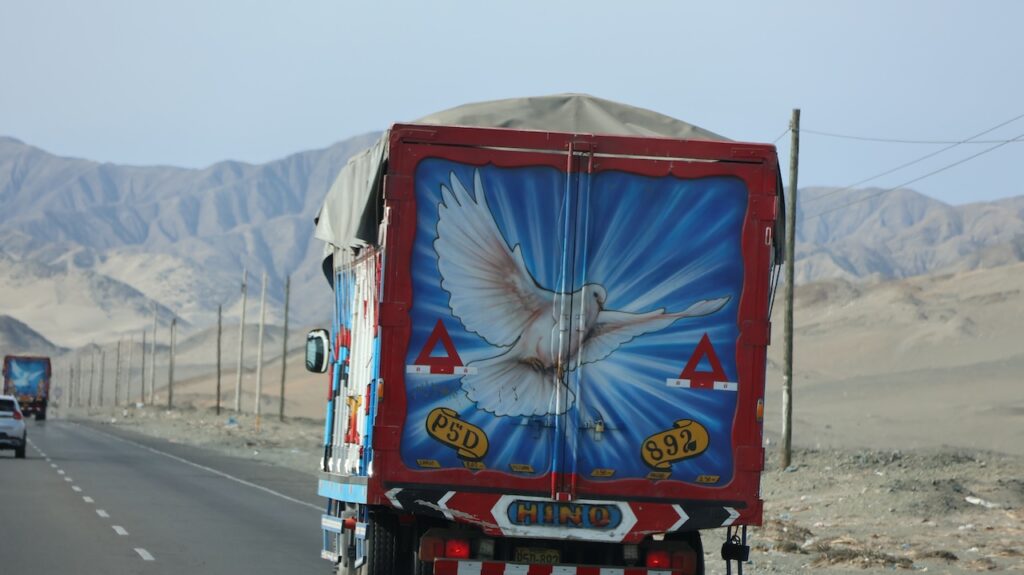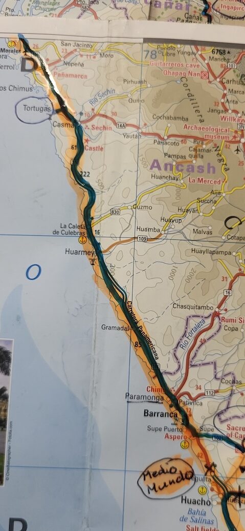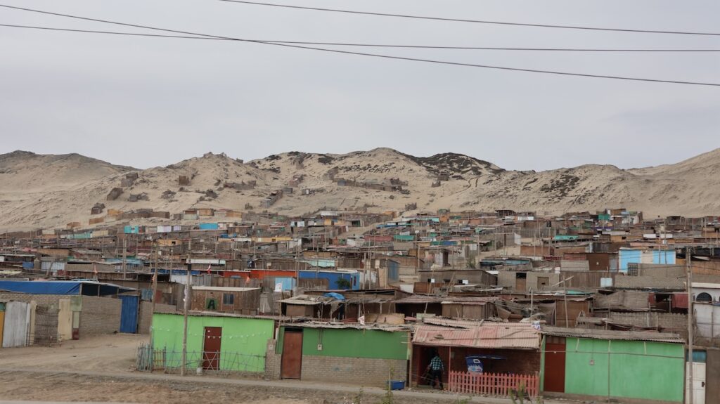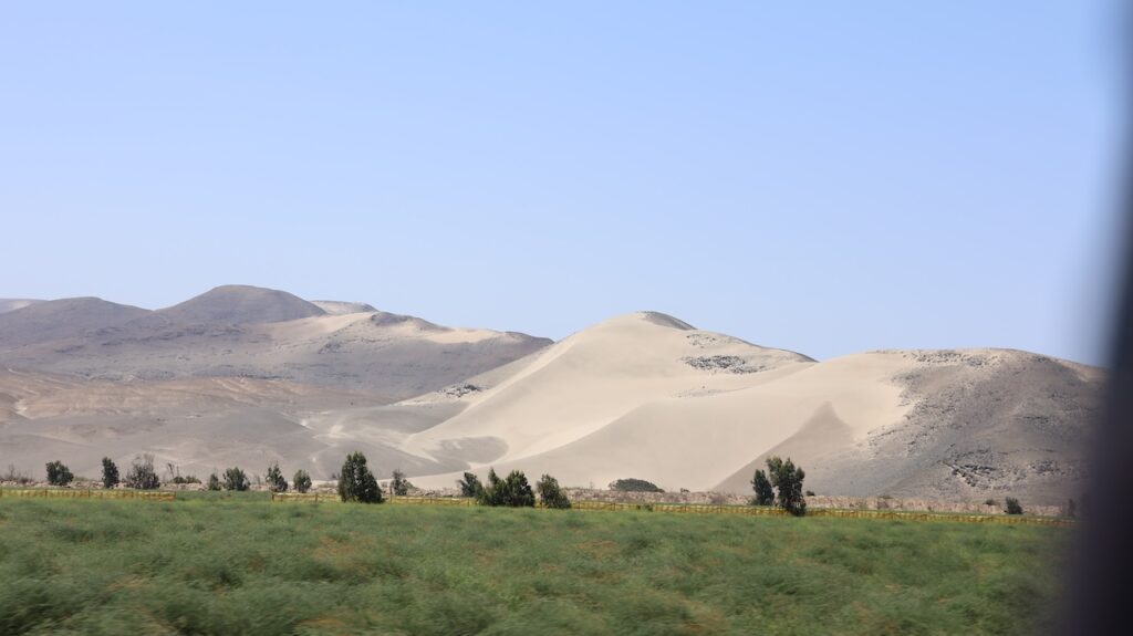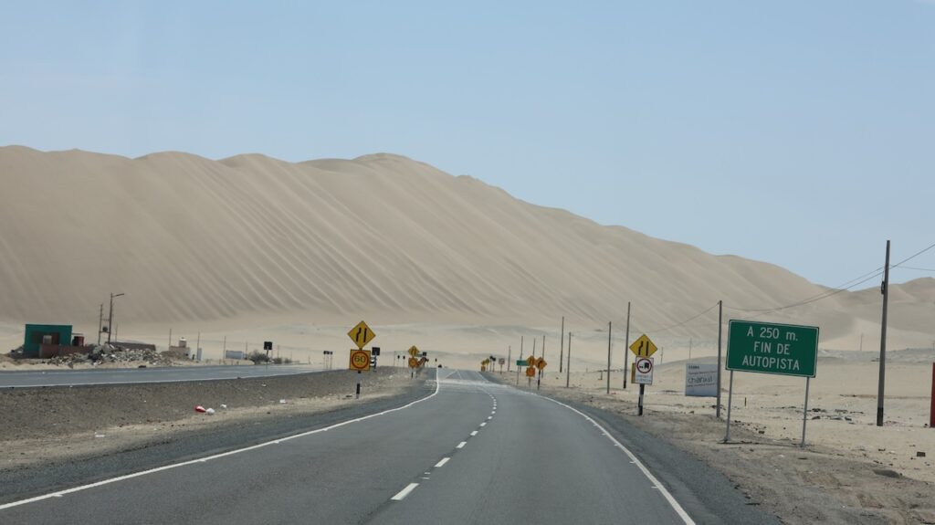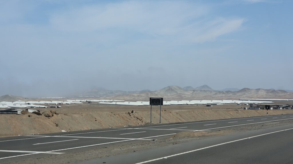 Kommen wir in die Nähe des Pazifik ist der Nebel hartnäckig. Mehr Inland scheint meist die Sonne. Ich habe nicht gewusst, dass Peru so sandig ist. Ich habe mir das Land immer grün vorgestellt. Ist es auch, aber nicht entlang des Pazifik. Also der Norden von Peru besteht zum grössten Teil aus Sand und Hühnerställen.