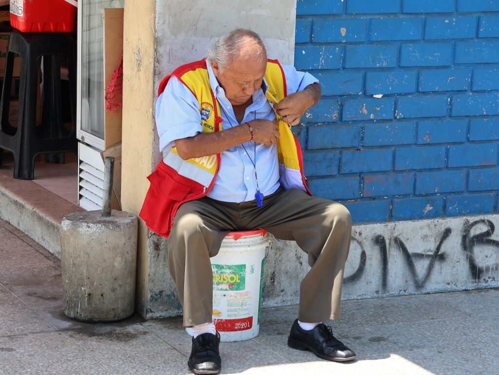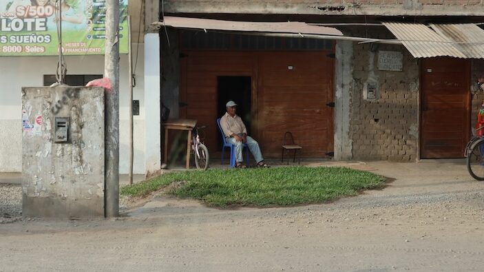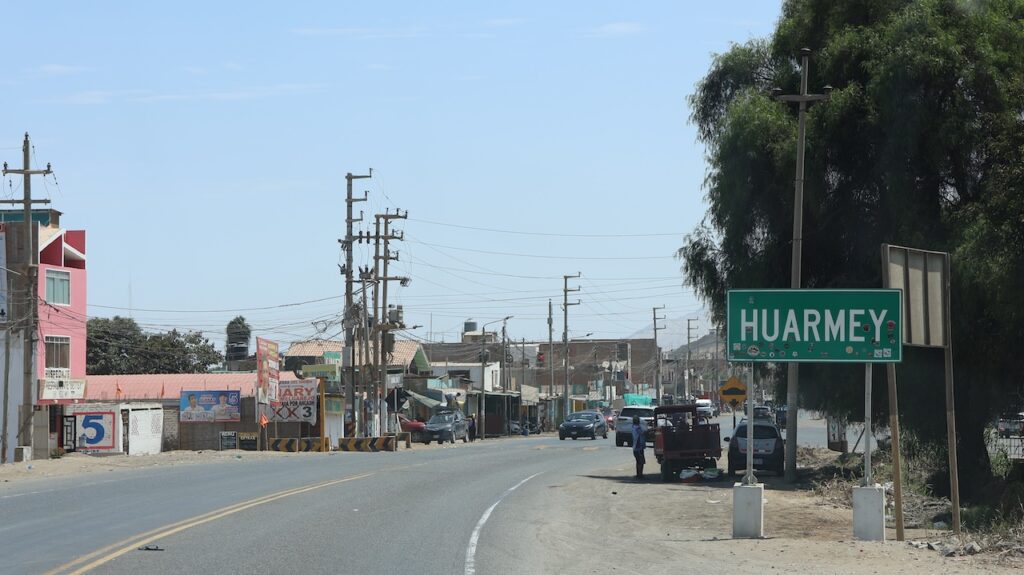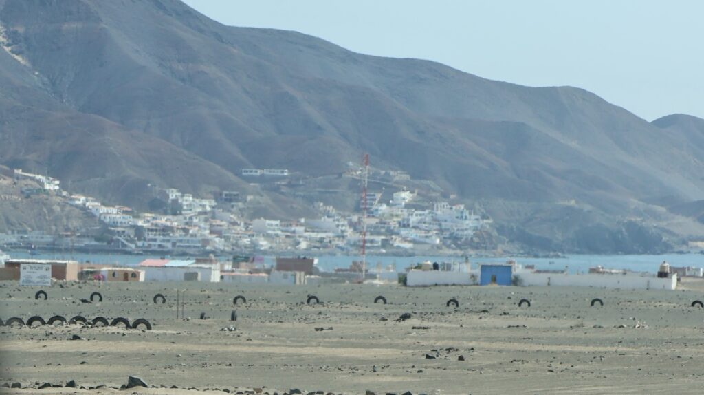 In Huarmey braucht Manfred eine Pause. Er kauft sich einen frischen Fruchtsaft und läuft herum. Ich bleibe im Camper sitzen und beobachte die Menschen. Ein Mann sitzt auf einem umgedrehten Eimer. Er trägt eine Weste, die ihn als jemand wichtigen auszeichnen soll. Um den Hals trägt er ein Trillerpfeife. Parkt jemand, pfeift er und läuft zum Auto. Er trinkt eine kleine Flasche Mineralwasser aus und schmeisst die leere Flasche einfach auf den Parkplatz. Als wir weiterfahren wollen, kommt er an mein Fenster und bettelt um Geld. Er brauche etwas zum Essen. Ich gebe ihm 5 Sol. Ein gutes Werk an Ostern!!!
