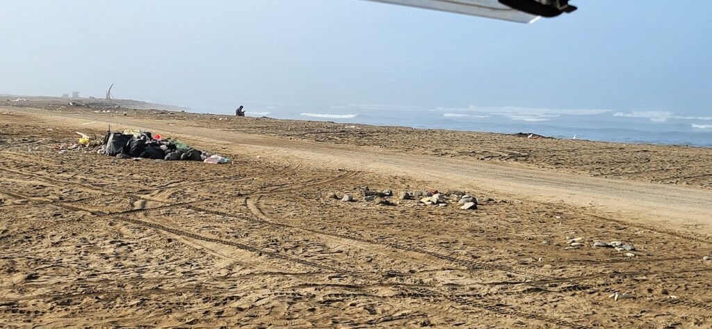 Am Morgen sind einige Abfalldurchwühler am Strand unterwegs. Zuerst fahren wir noch lange zwischen Häusern durch, danach wird es langsam grün. Zuckerrohr umgibt uns.