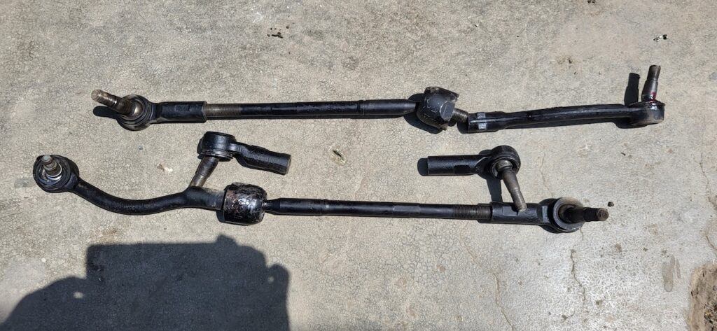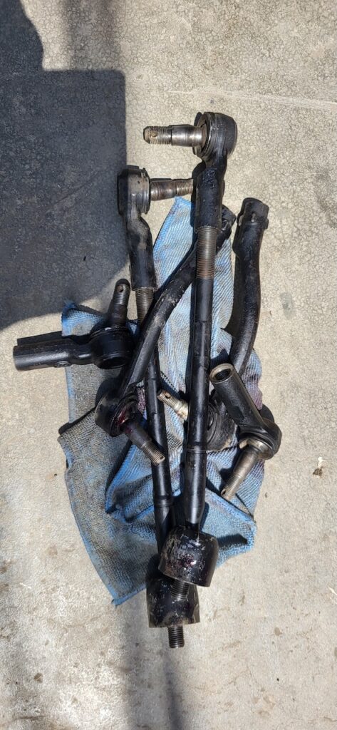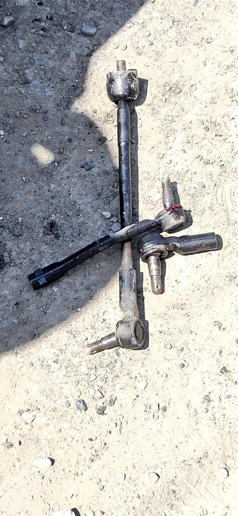 Nun beginnt das Feilschen. Manfred fühlt sich überrumpelt und übers Ohr gehauen. Der Mann meint, die Arbeit ist gemacht und er könne doch jetzt die Spurstangen nicht wieder ausbauen. Manfred sieht sich die alten Spurstangen an. Sie sind rechts in schlechtem Zustand, ausgeschlagen. Er sagt er hat kein Geld.