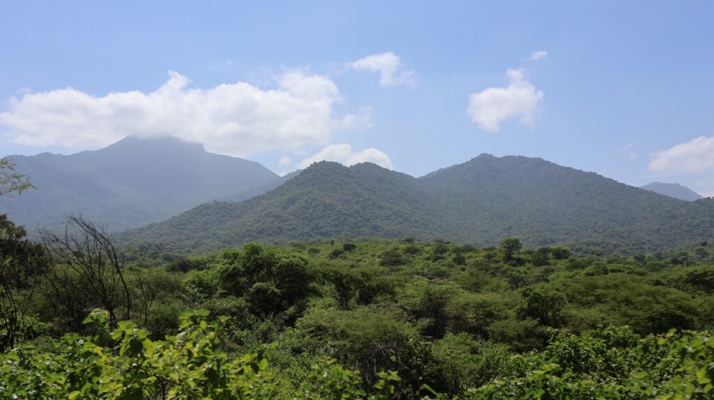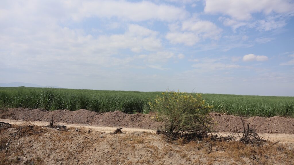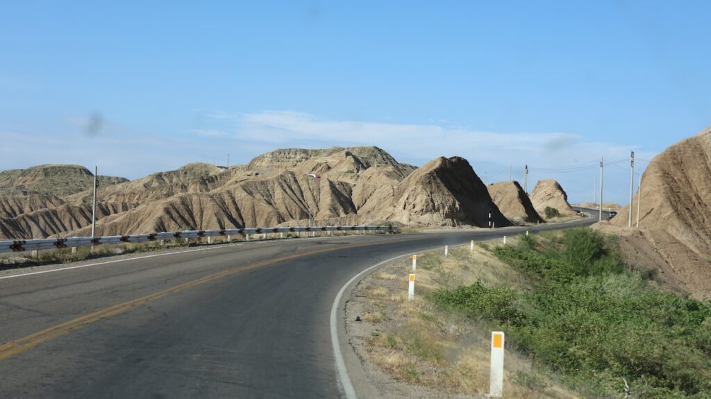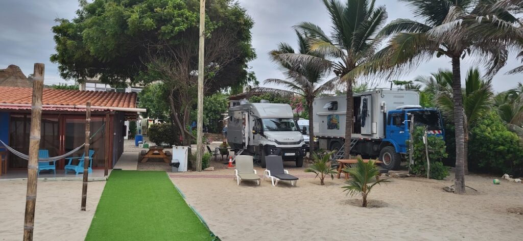 Wir fahren wieder in die Einöde. Ausser links und rechts Zuckerrohr ist es wieder sandig und felsig wie gehabt. Wir befahren eine 25 Kilometer lange schnurgerade Strasse. Zuerst links und rechts Zuckerrohr. Danach wird die Landschaft bizarr hügelig. Wir erreichen den Pazifik wieder. Die Strasse ist furchtbar mit Schlaglöchern ausgestattet. Wir können nicht zügig fahren. In den Ortschaften sind die Strassen wieder unter dem Niveau einer schlechten Feldstrasse bei uns. Wir hoffen aber trotzdem, dass wir den Campingplatz Swiss Wassi noch vor der Dunkelheit erreichen.