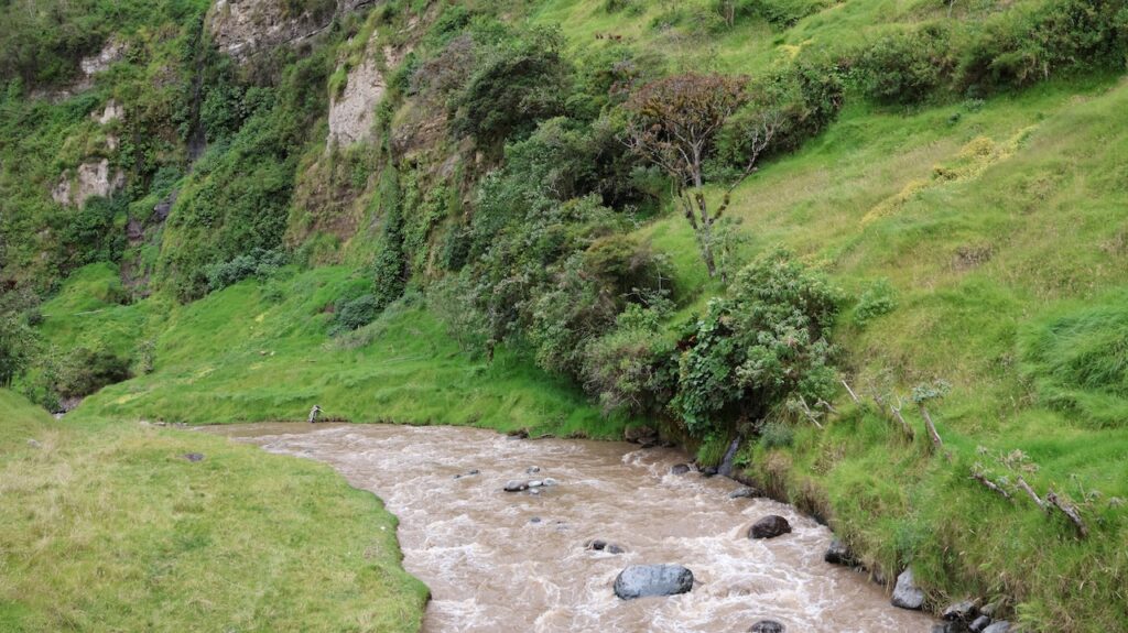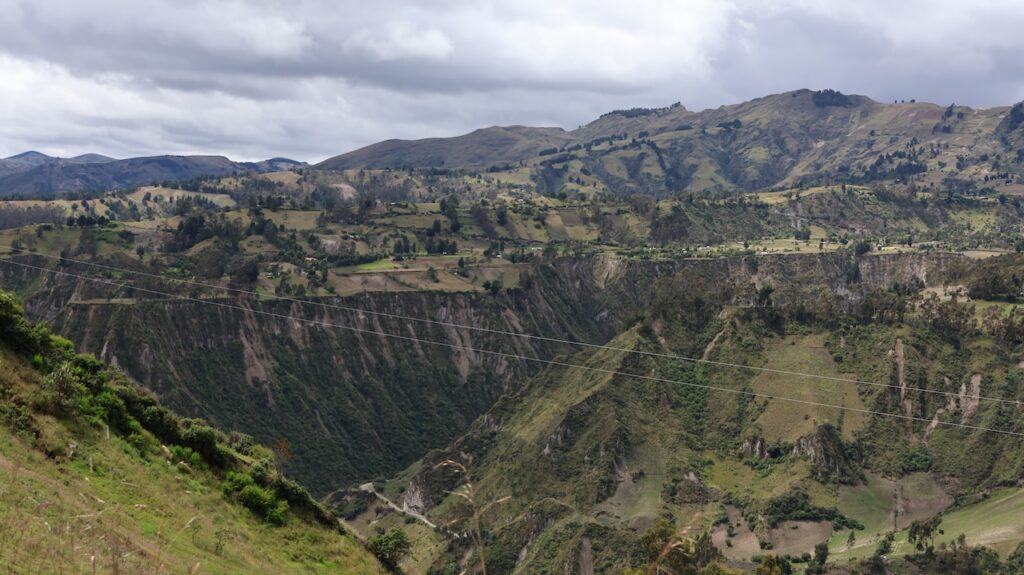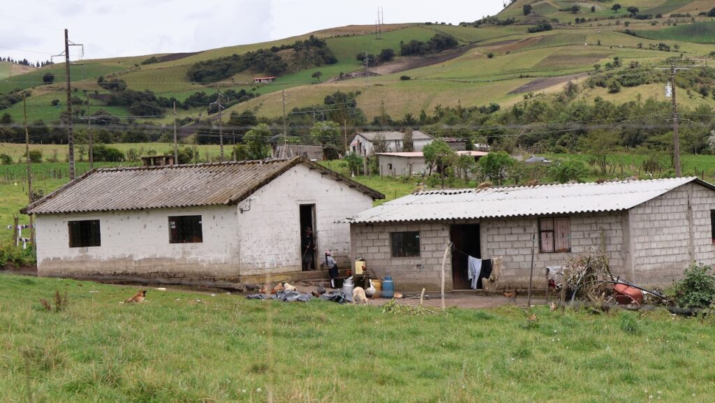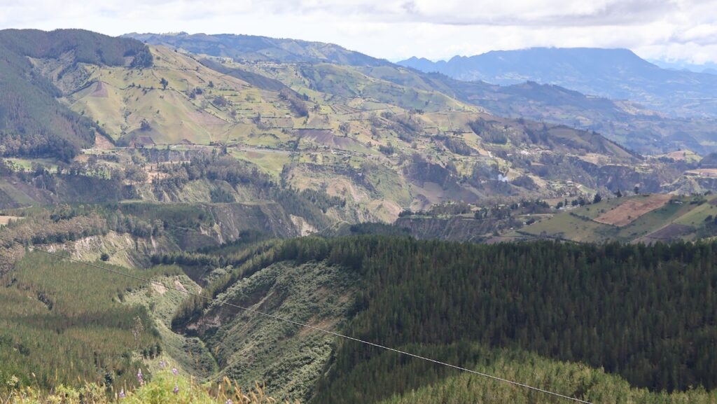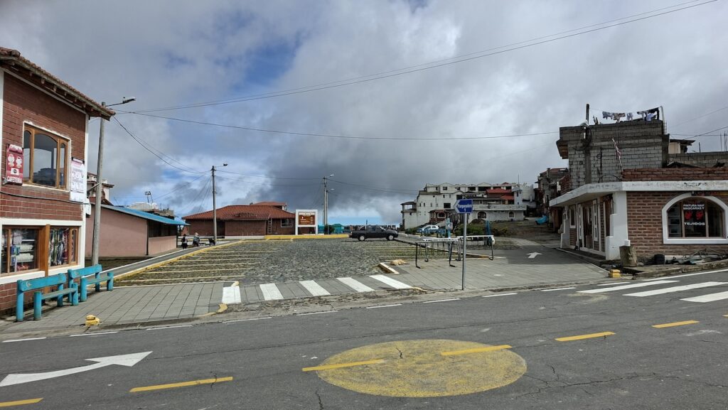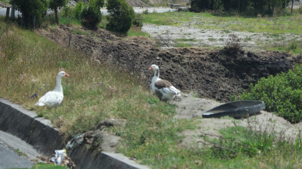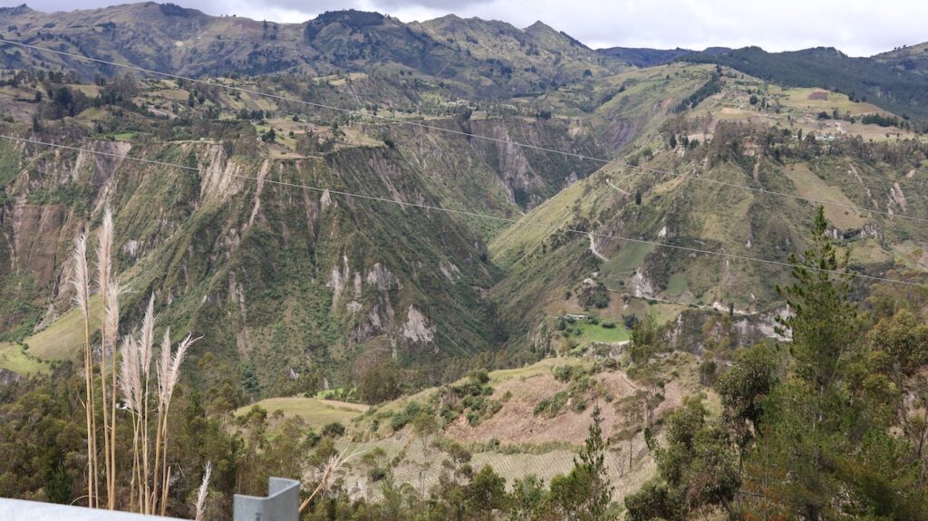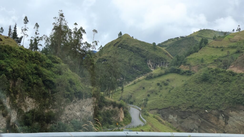 Dörfer gibt es nicht viele. Das Grösste ist Sigchos. Aber auch die zwei kleinen Orte haben überdimensionierte Ortstafeln. Am Strassenrand laufen Gänse herum und Schweine sind angebunden. Auch die Kühe sind angebunden und fressen so die Weide von links nach rechts ab. Die Häuser werden auch wieder schäbiger. Nach der Schlucht geht es einige Male in vielen Serpentinen und Haarnadelkurven hinauf und wieder hinunter. Es sind heute wieder so einige Kurven, die Manfred fahren muss.