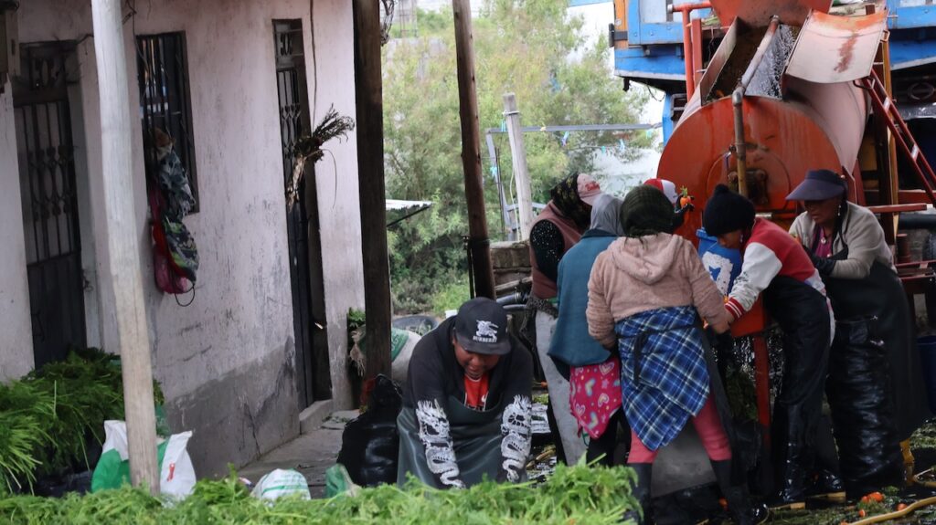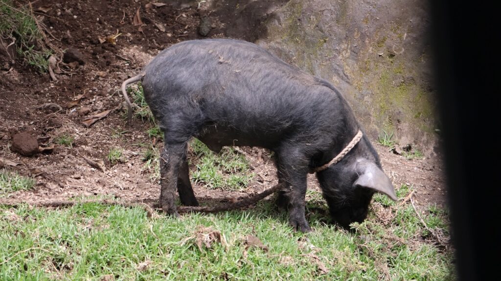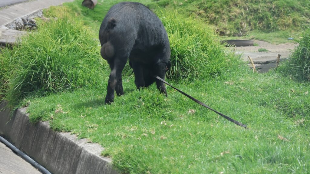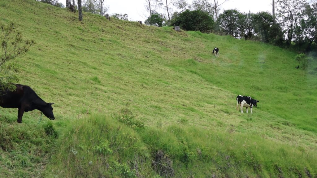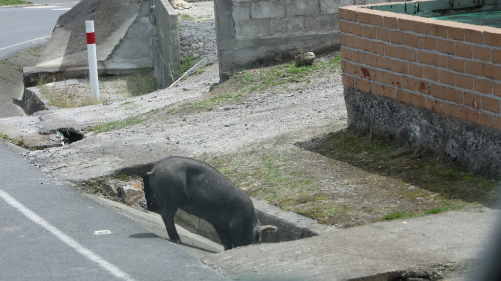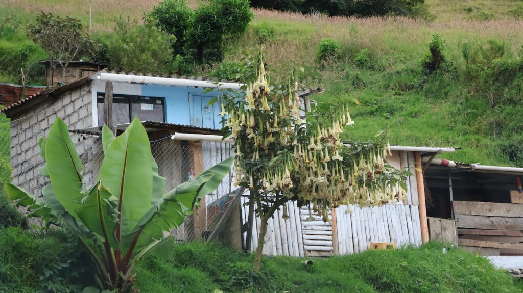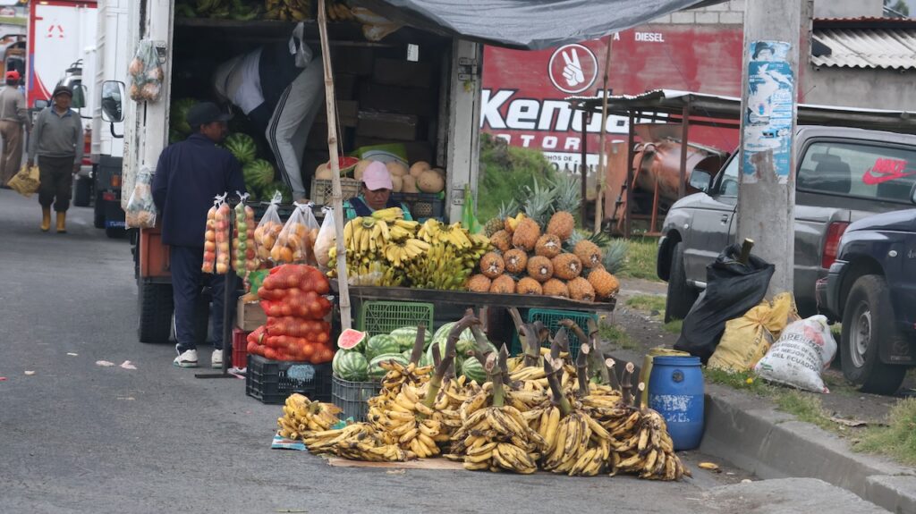 Dörfer gibt es nicht viele. Das Grösste ist Sigchos. Aber auch die zwei kleinen Orte haben überdimensionierte Ortstafeln. Am Strassenrand laufen Gänse herum und Schweine sind angebunden. Auch die Kühe sind angebunden und fressen so die Weide von links nach rechts ab. Die Häuser werden auch wieder schäbiger. Nach der Schlucht geht es einige Male in vielen Serpentinen und Haarnadelkurven hinauf und wieder hinunter. Es sind heute wieder so einige Kurven, die Manfred fahren muss.