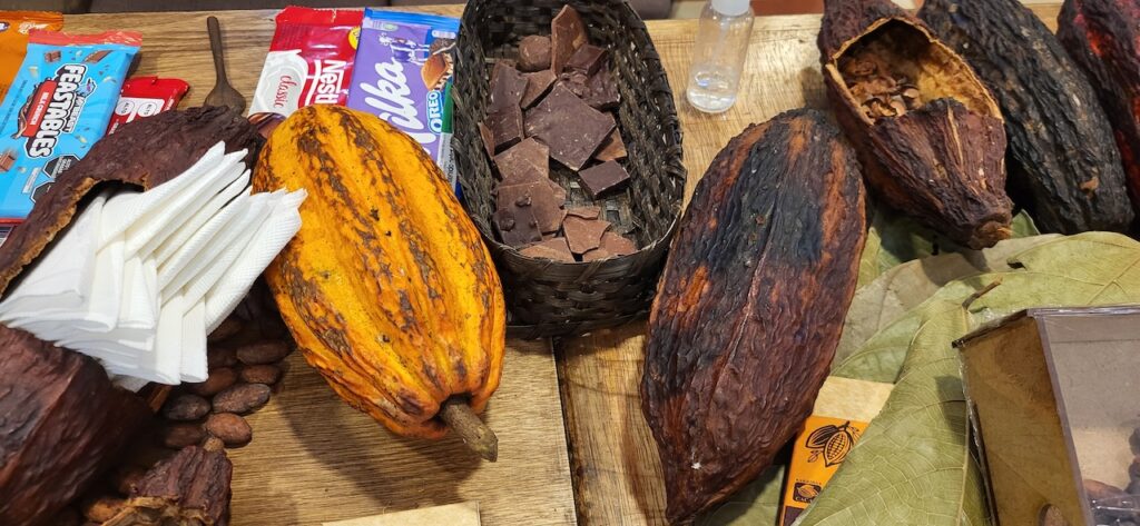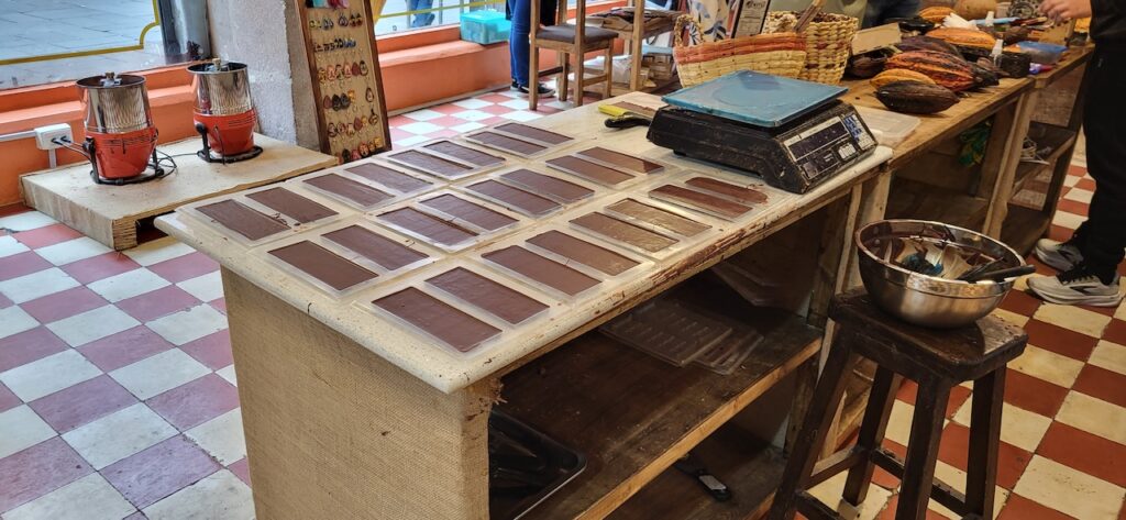 Das Taxi fährt uns mitten in die Stadt. Zuerst besuchen wir ein Familienunternehmen, das Schokolade herstellt. Alles ist sehr klein und überschaubar. Der Bruder des Inhabers war in der Schweiz, um das Herstellen von Schokolade zu lernen.