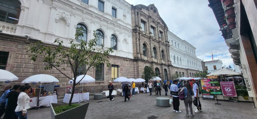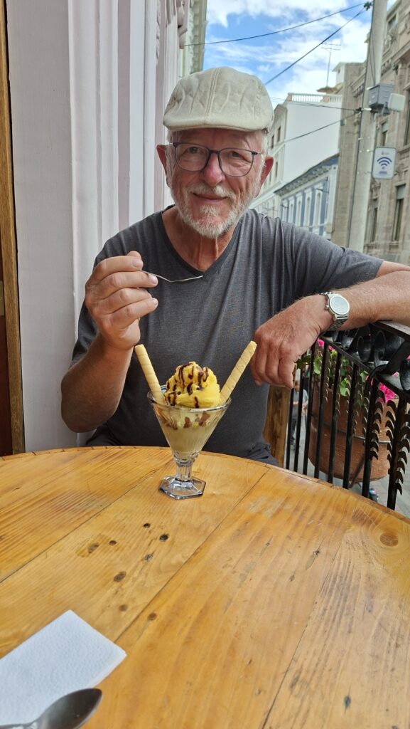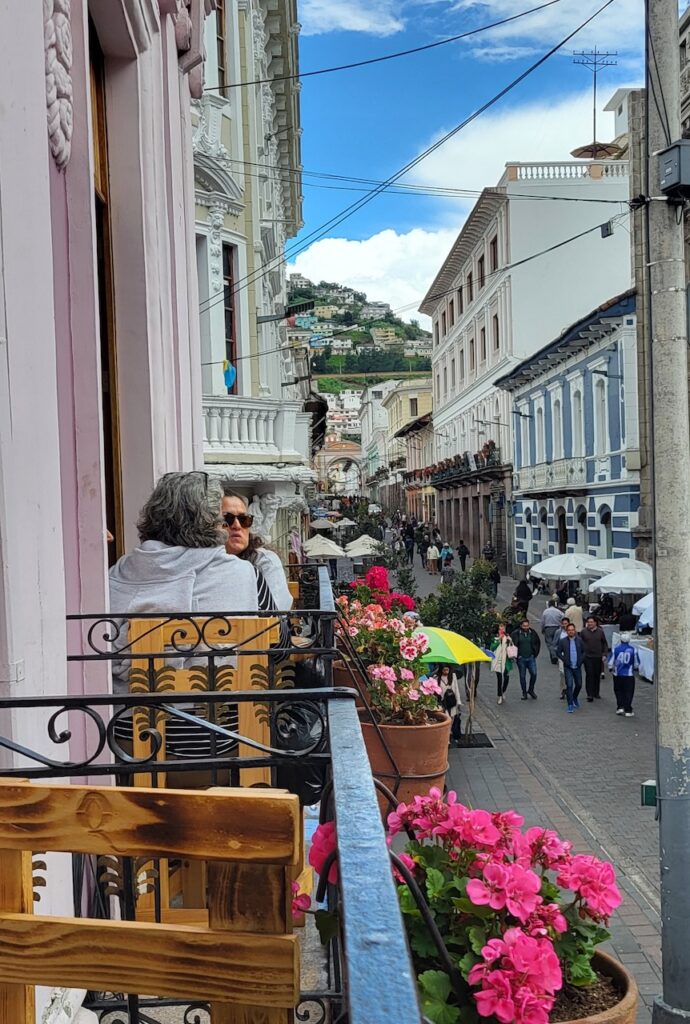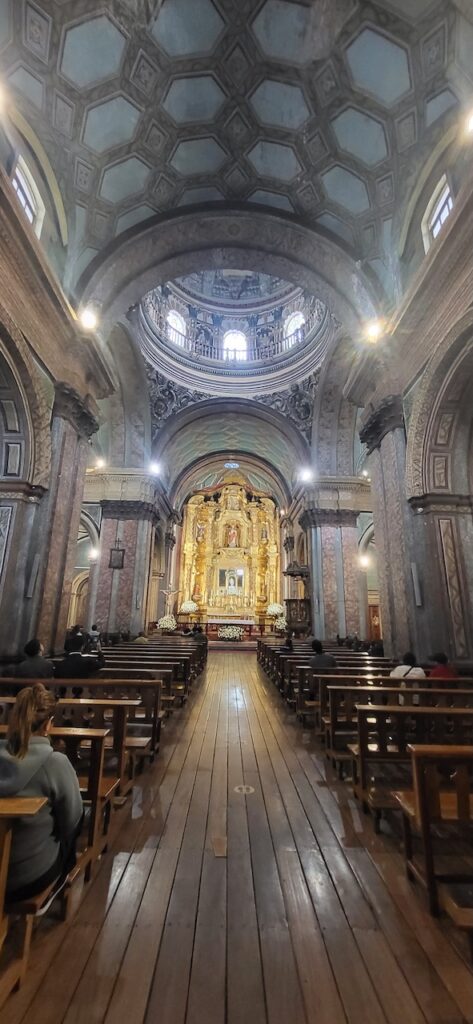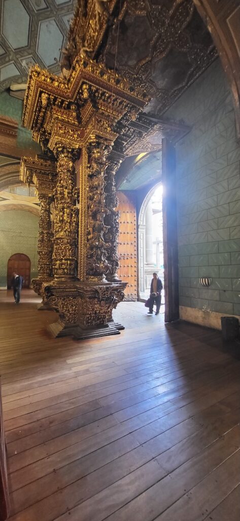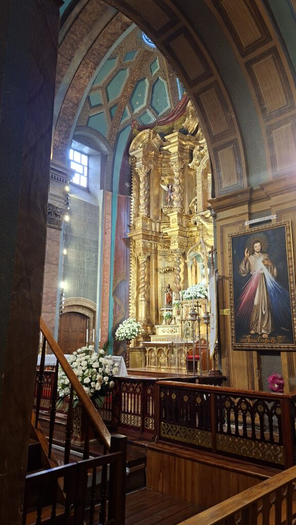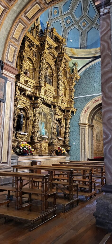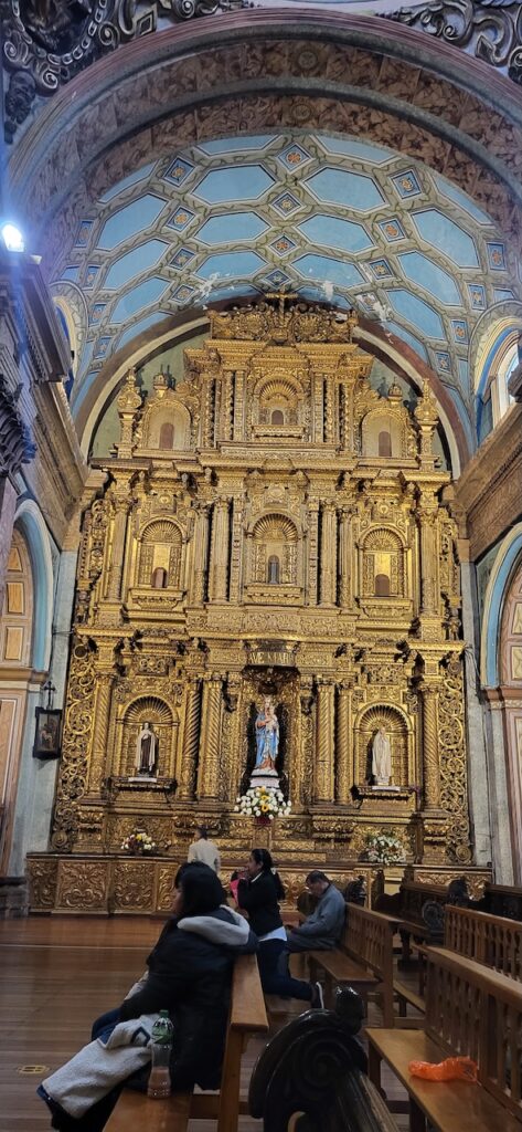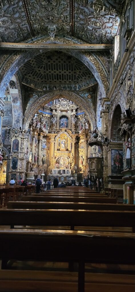 Wir bummeln durch die Stadt und schauen uns zuerst eine Kirche mit Museum an. Wahnsinnig, was hier alles an Gold in den Kirchen ausgestellt ist. Bei einer anderen Kirche vis-a-vis essen wir draussen auf dem Balkon unser Mittagessen. Es ist interessant den vielen Menschen beim Vorbeilaufen zuzusehen.
