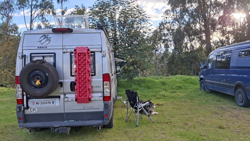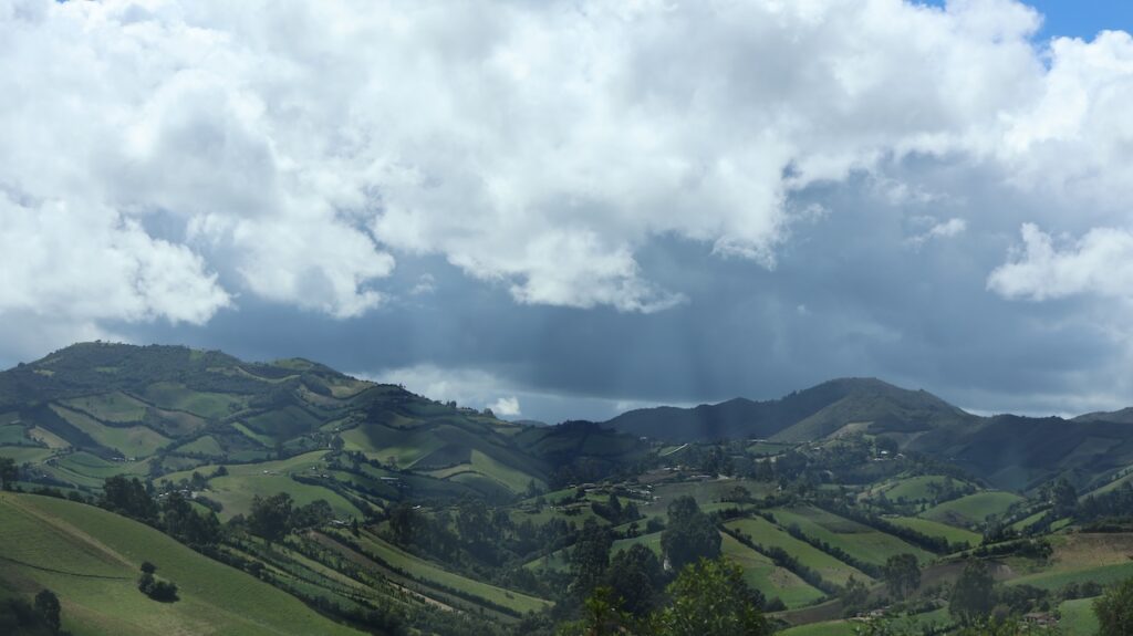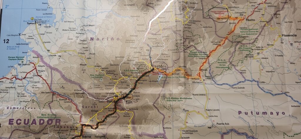 Gleich nach der Grenze fahren wir zum Kolibri Campingplatz. Ana nimmt uns herzlich auf. Nach dem Abendessen kommt sie vorbei und gibt uns viele Tipps, was wir neben der Panamericana Strasse alles Interessantes in Kolumbien besuchen können. Neben uns eine Schottische Familie. Sie sind heute am Bombenkrater vorbeigefahren.
