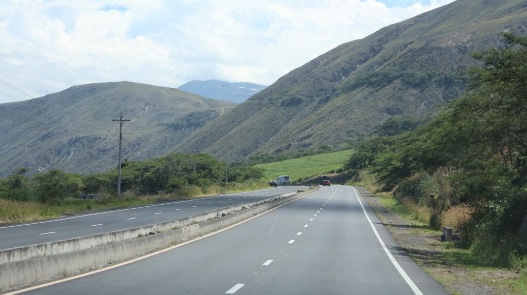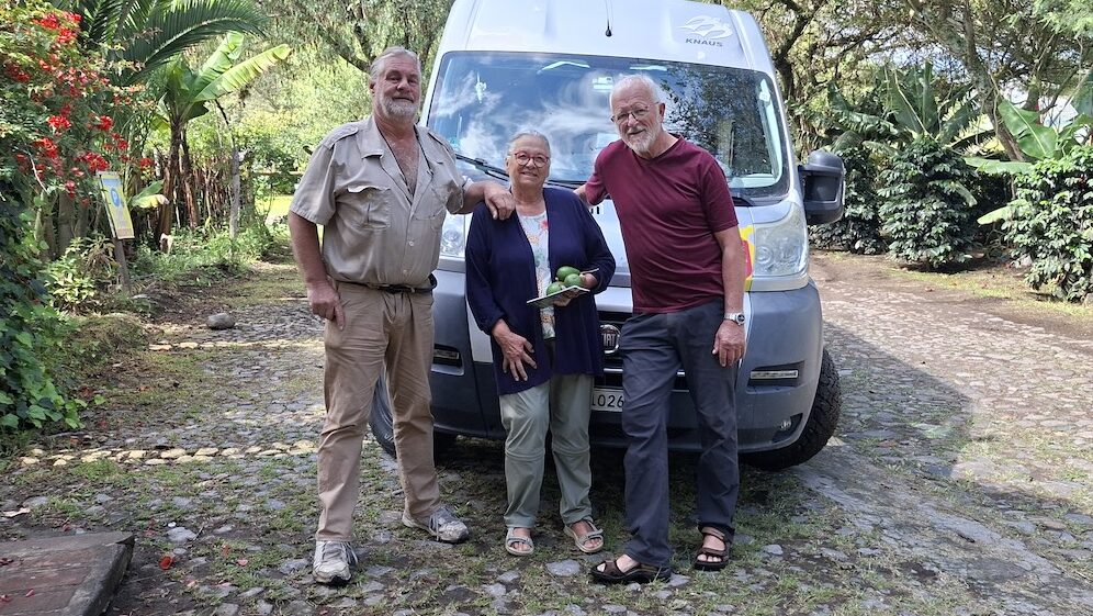 Wir haben uns von unseren Nachbarn Detlef und Karin verabschiedet. Sie werden heute nach Galapagos fliegen. Auch von Hans, dem Finka Besitzer haben wir uns verabschiedet. Als wir uns die Hände schütteln, kommt die Polizei vorbei. Hans hat sie nach den Verhältnissen in Kolumbien ausgefragt. Sie wollen aber von nichts wissen! Hans hat uns aber schon davon abgeraten die Panamericana zu benutzen.